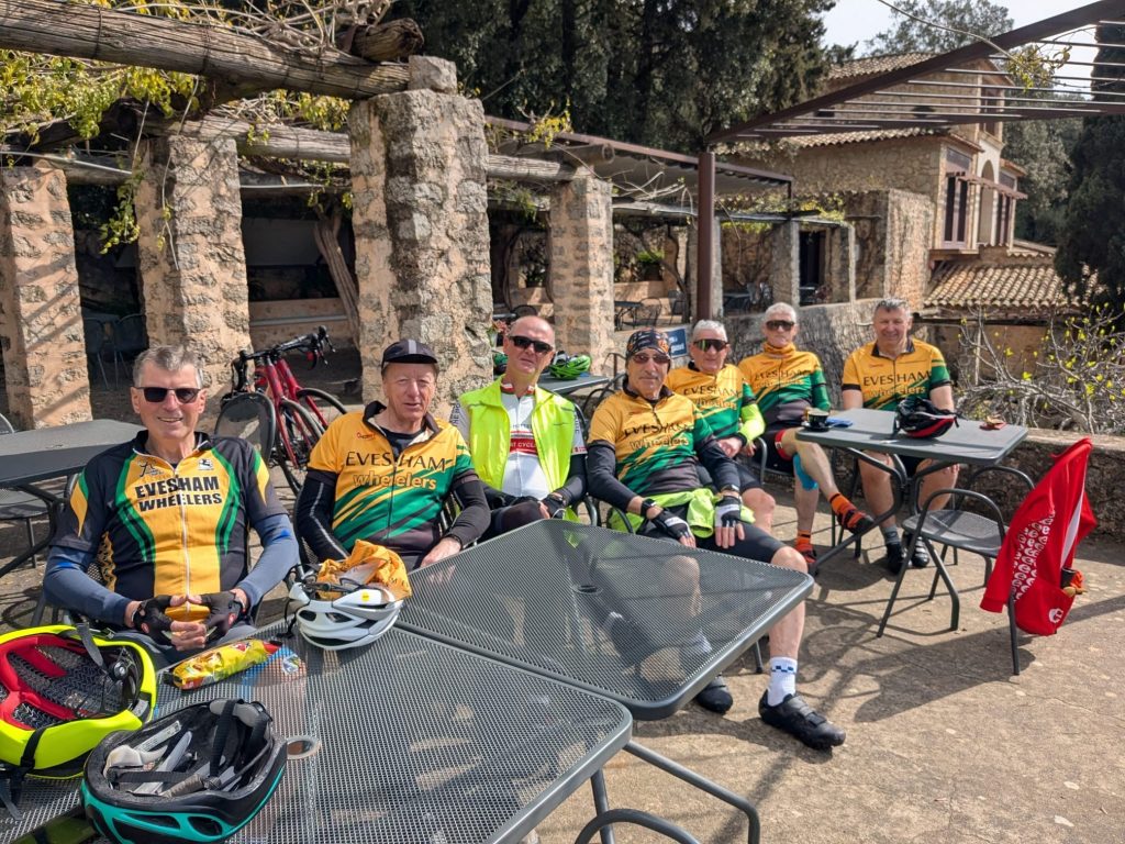Twelve of us went this year – 8 cycling and 4 doing a lot of walking and exploring. It was great cycling weather – 3 days cool, 3 days warm and all days dry ( well – except for those of us who sneaked a few extra days and chose wet ones). We had 6 days of pedaling with well over 300 miles covered by most of the group. And the walkers/explorers covered 8-9 miles most days, so all 24 legs on the trip got a good workout during the week. The biggest surprise of the week was the EW team winning the hotel music quiz! The pictures below can tell the rest of the story! If you are interested in joining in, look out for news of Majorca 2027 later in the year.